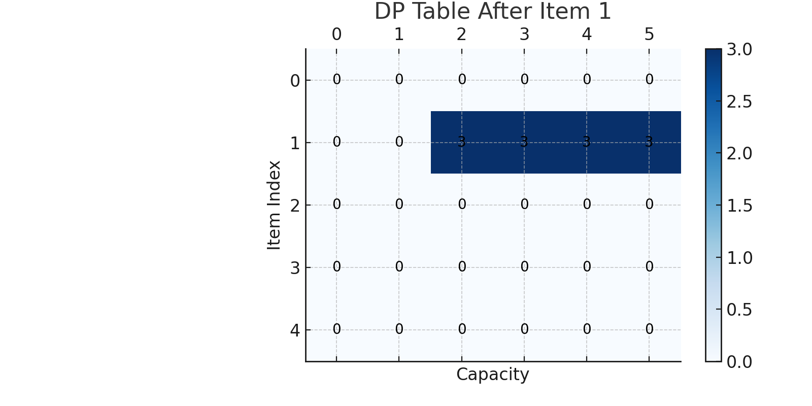 const dp = Array.from({ length: n + 1 }, () => Array(capacity + 1).fill(0));