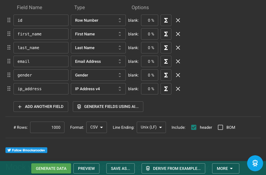 Mockaroo 사용 시 주의할 점